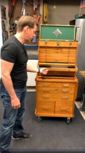 Finally, Dunham picked up a knock-off tool chest from a popular retail chain. He put the three tool chests in a line, so you could see the differences and the inspiration clearly.