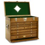 Crafted for collectors, hobbyists, and enthusiasts who appreciate both form and function, this new 9-drawer wooden collectors chest offers refined organization in a compact, heirloom-quality format. With three drawer heights, including a shallow top drawer ideal for small or delicate items, the layout is a thoughtful homage to classic Gerstner chest designs—where thinner drawers were once used to carefully organize fine instruments.