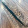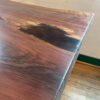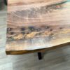 No two tables are alike. Knots and organic splits have been carefully stabilized with clear and black epoxy, allowing the wood’s natural character to shine. What makes this piece even more remarkable are the gold epoxy accents filling bullet holes discovered within the slab—transforming a rugged past into a sophisticated design feature. Each detail carries history while enhancing the table’s modern appeal.