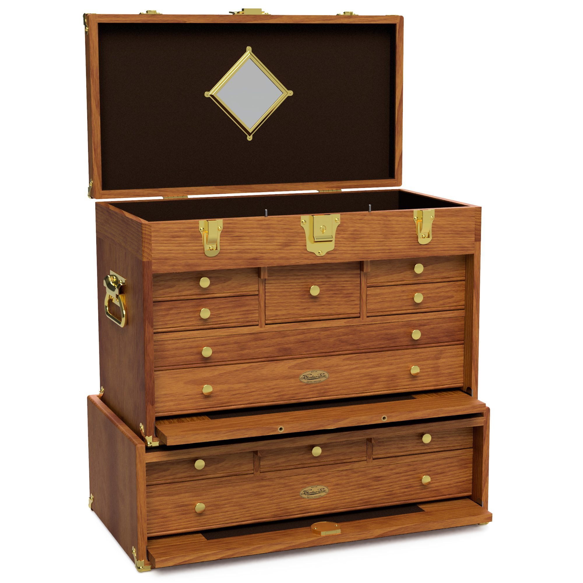 The B2104 Classic Base was purpose-built to match the footprint of the 2007 Chest. Its four additional drawers provide ample space for larger items—power tools, hand planes, or collectible items—while maintaining the same premium wood, felt-lined interiors, and heirloom finish. Lockable and moisture-resistant, it protects your investments while complementing any workshop or office.