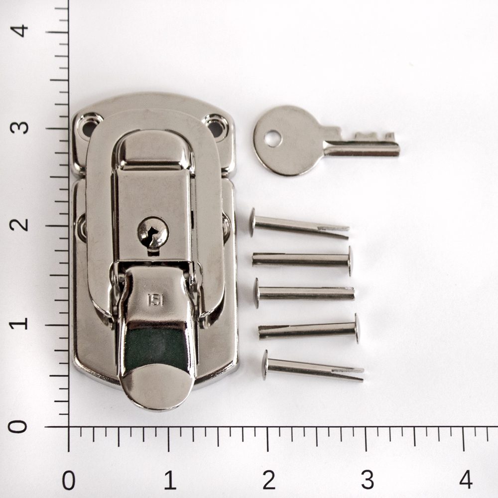 This nickel-plated surface-mount chest lock is designed for wooden tool chests and cases with a top-opening lid. Ideal for restorations, replacements, or new builds, the lock offers both functionality and classic style.