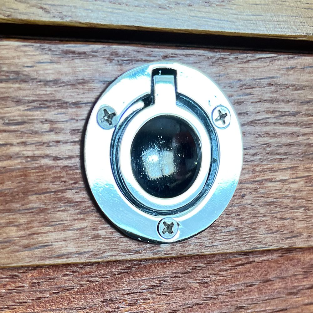 Gerstner Chrome Ring Style Finger Pull for the front lid of Gerstner chests starting in 2010.
